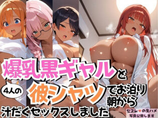 【ベストエロ同人マンガ】4人の爆乳黒ギャルお泊り彼シャツSEX