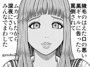 gyoubu26 【ベストエロ同人マンガ】腋毛のはえた口の悪い黒ギャルに告ったら罵倒されてムカついたから深夜にさらってみんなでまわした